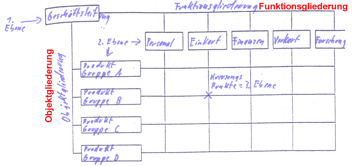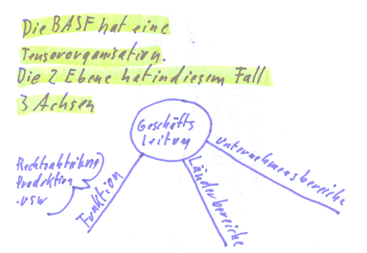 Die BASF arbeitet mit einer Tensororganisation: Bei der Tensororganisation werden die 2 Achsen des Matrixsystems durch eine 3. Achse erweitert.