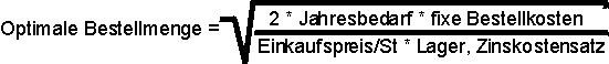 Durchschnittlicher Lagerbestand bei gleichmäßigem Lagerabgang = (Bestellmenge / 2) + Sicherheitsbestand